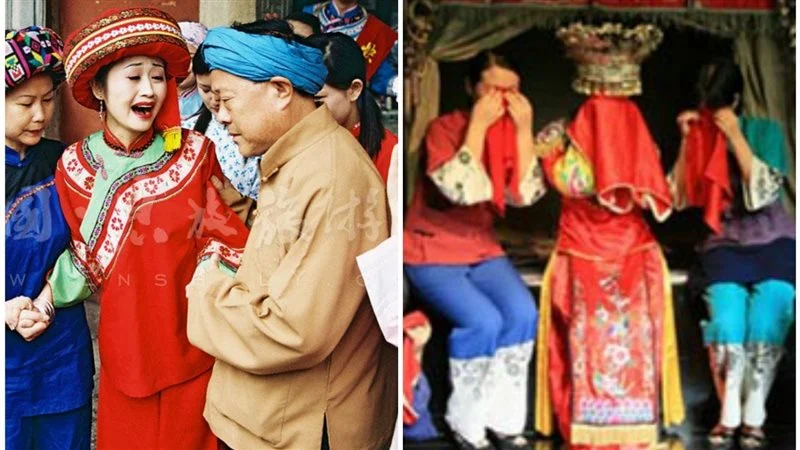 ومن الأمور الشائعة؛ البكاء الجماعي، بين مجتمعات الأقليات العرقية مثل شعب توجيا، ويي، وتشوانج، ويحظى بشعبية في وسط هوبى ومقاطعات قوانجدونج الجنوبية الشرقية.