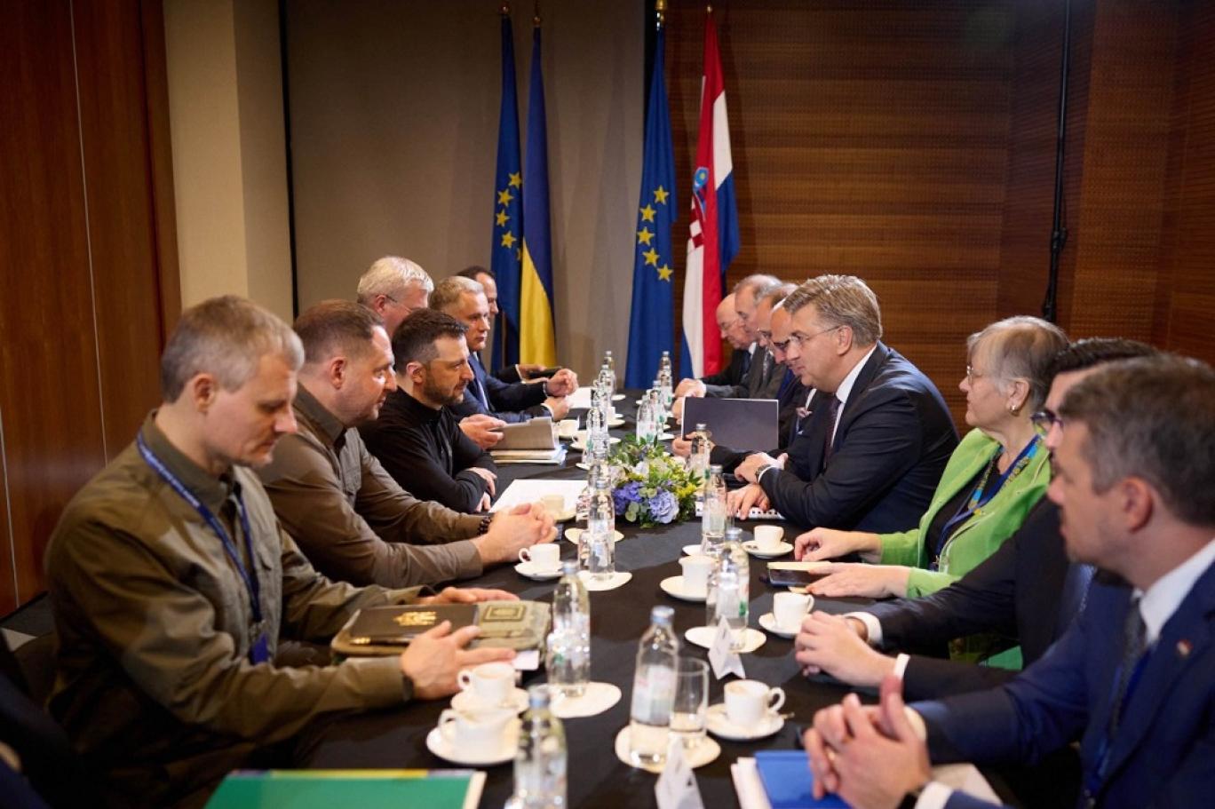رئيس الوزراء الكرواتي أندريه بلينكوفيتش يتحدث إلى الرئيس الأوكراني فولوديمير زيلينسكي