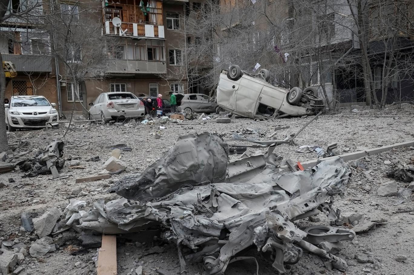 وقال وزير الداخلية إيهور كليمينكو إن فرق الإنقاذ ورجال الشرطة يرفعون الأنقاض بعد أن ألحق الهجوم أضراراً بمبنى سكني مكون من خمسة طوابق وما لا يقل عن سبعة منازل و20 سيارة.