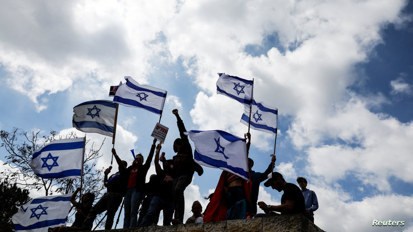 وتنظم احتجاجات على المشروع منذ ثلاثة أشهر تقريبا في تعبئة تعتبر من الأكبر في تاريخ إسرائيل. ويرى منتقدو الإصلاح أن من شأنه تعريض الديمقراطية في البلاد للخطر.