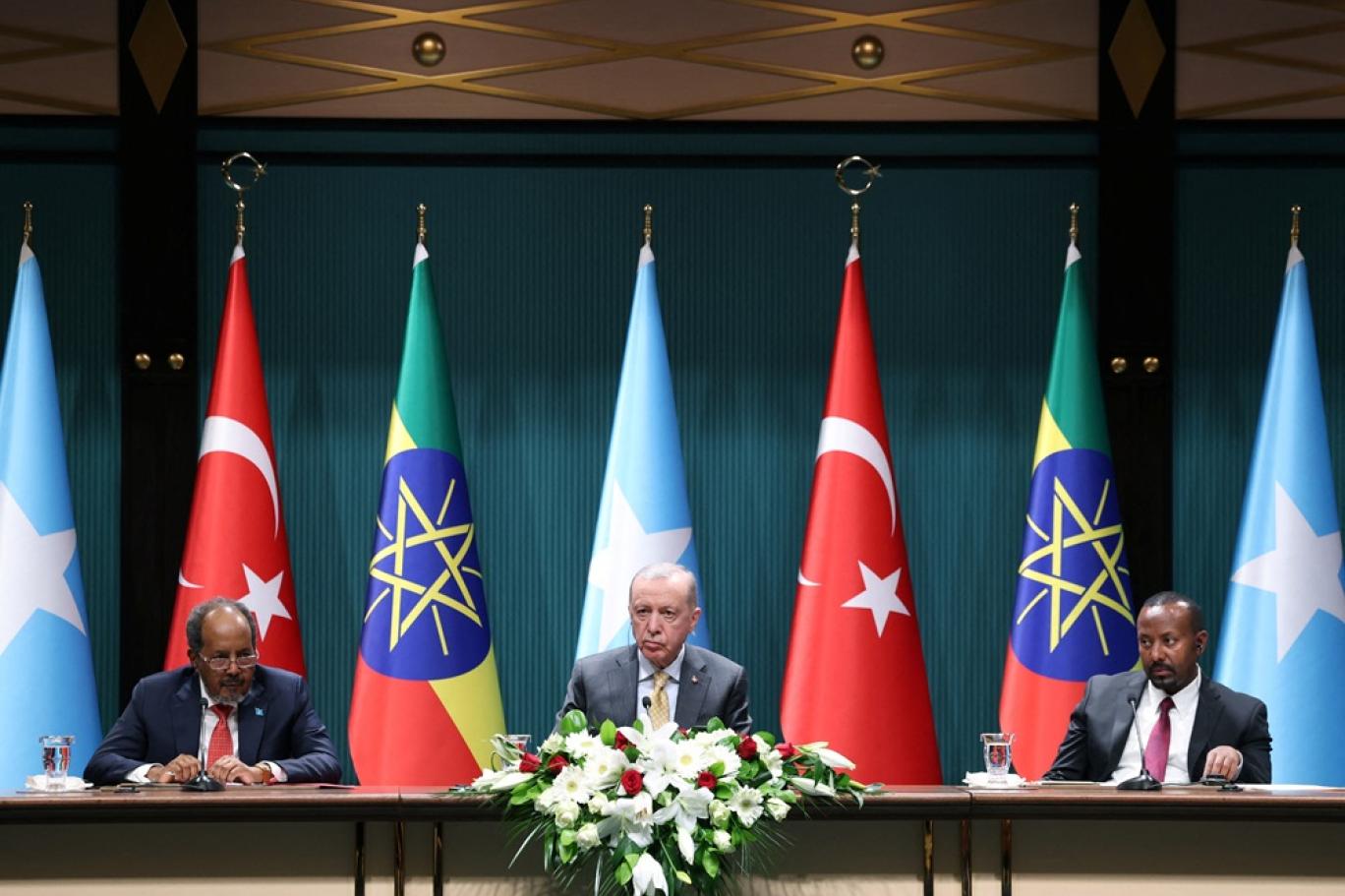 وخلال مؤتمر صحافي مشترك مع الرئيس الصومالي حسن شيخ محمود ورئيس الوزراء الإثيوبي آبي أحمد في أنقرة، قال إردوغان إنه يأمل بأن يكون هذا “الاتفاق التاريخي خطوة أولى نحو بداية جديدة مبنية على السلام والتعاون” بين مقديشو وأديس أبابا.