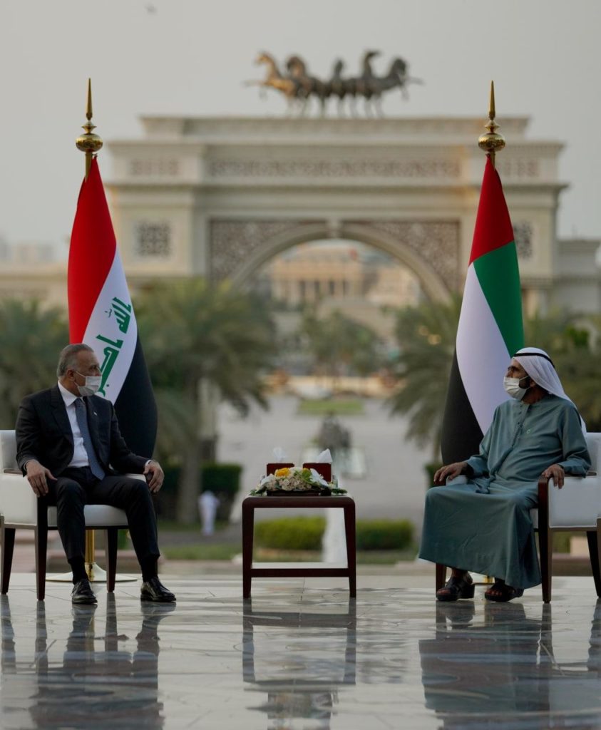وذكر بيان المكتب الاعلامي لرئيس مجلس الوزراء، تلقت – حرية – نسخة منه، (4 نيسان 2021)،أن “الكاظمي التقى رئيس مجلس وزراء الامارات حاكم دبي الشيخ محمد بن راشد آل مكتوم، وذلك في إطار زيارته الرسمية الحالية الى دولة الامارات العربية المتحدة”.