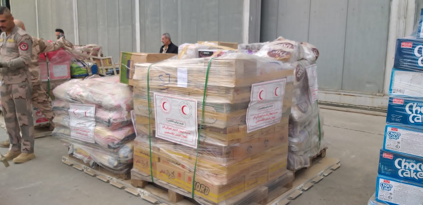 اعلنت جمعية الهلال الاحمر العراقي عن ارسال اكثر من ١٥ طنا من المواد الغذائية والاغاثية الى مصر لارسالها الى الشعب الفلسطيني في غزة .