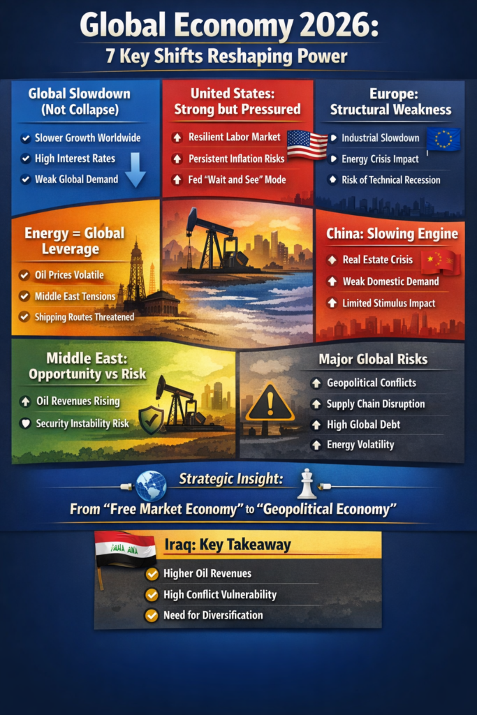 العالم لا يمر بأزمة اقتصادية تقليدية، بل بمرحلة انتقالية تعيد تعريف قواعد الاقتصاد الدولي، حيث تتقدم السياسة على السوق، وتصبح الطاقة والأمن عناصر حاسمة في تحديد مسار الاقتصاد العالمي.