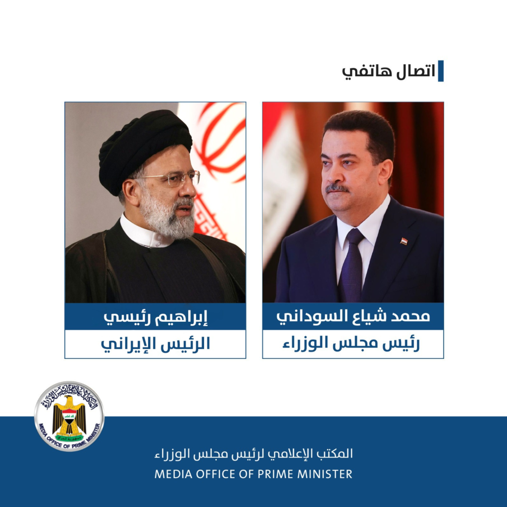 تلقى رئيس مجلس الوزراء محمد شياع السوداني، اليوم السبت، اتصالاً هاتفياً من رئيس الجمهورية الإسلامية الإيرانية إبراهيم رئيسي.