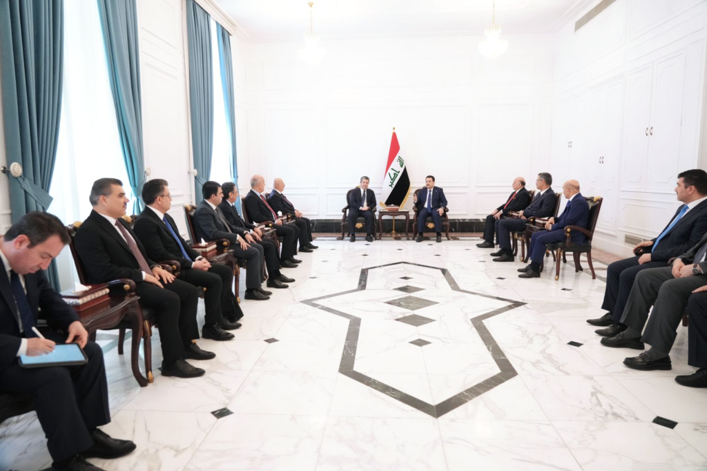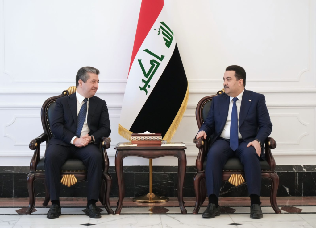رئيس مجلس الوزراء محمد شياع السوداني يستقبل رئيس حكومة إقليم كردستان العراق مسرور بارزاني والوفد المرافق له .