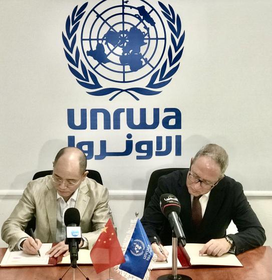 وذكرت وكالة الأنباء الفلسطينية (وفا) أن الاتفاقية وقعها السفير الصيني مع مدير الشراكات في دائرة العلاقات الخارجية بالأونروا كريم عامر، وذلك مقر الوكالة بالعاصمة الأردنية عمّان.
