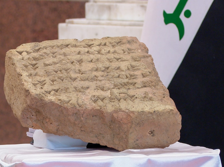 وقال خلال مؤتمر صحافي لتسليم القطعة، إن “القطعة لها أهمية كبيرة لكونها أثرية أصلية ومكتوب عليها نص متكامل بالخط المسماري”.