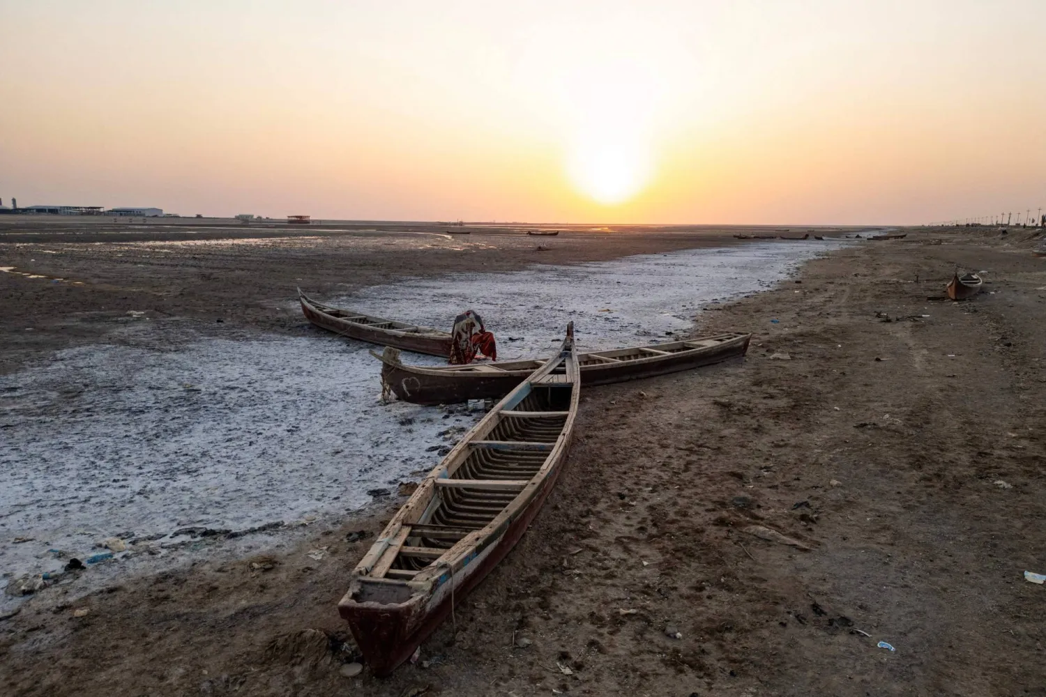 خزان مدمر من مستنقعات جافة يظهر في محافظة البصرة جنوب العراق