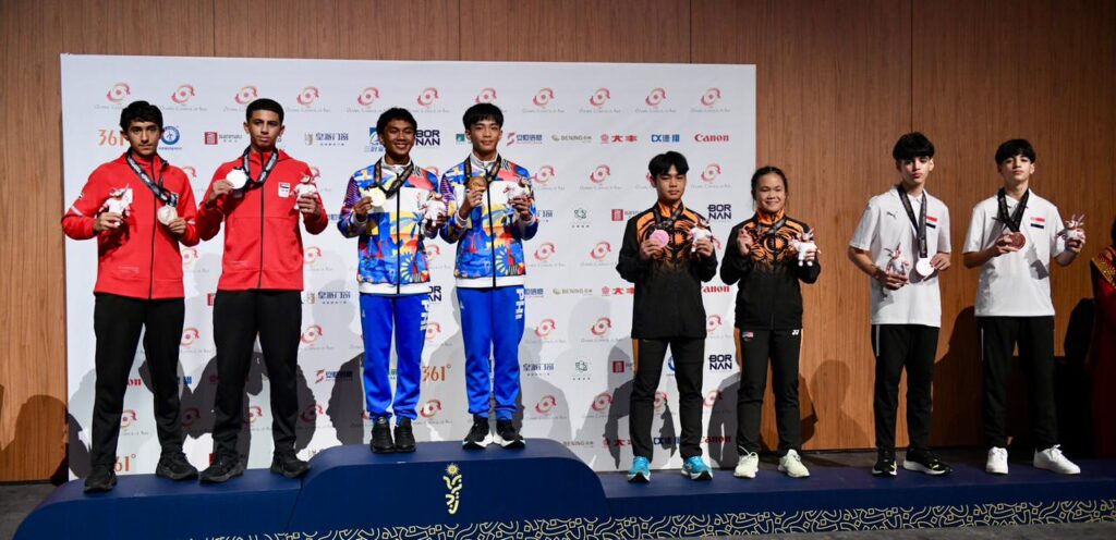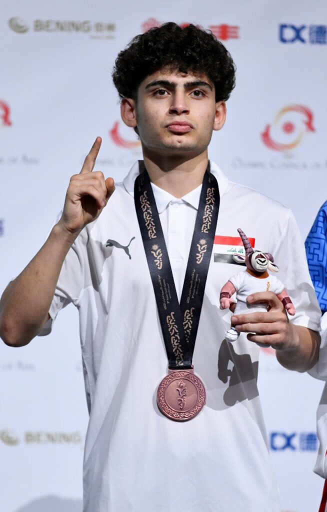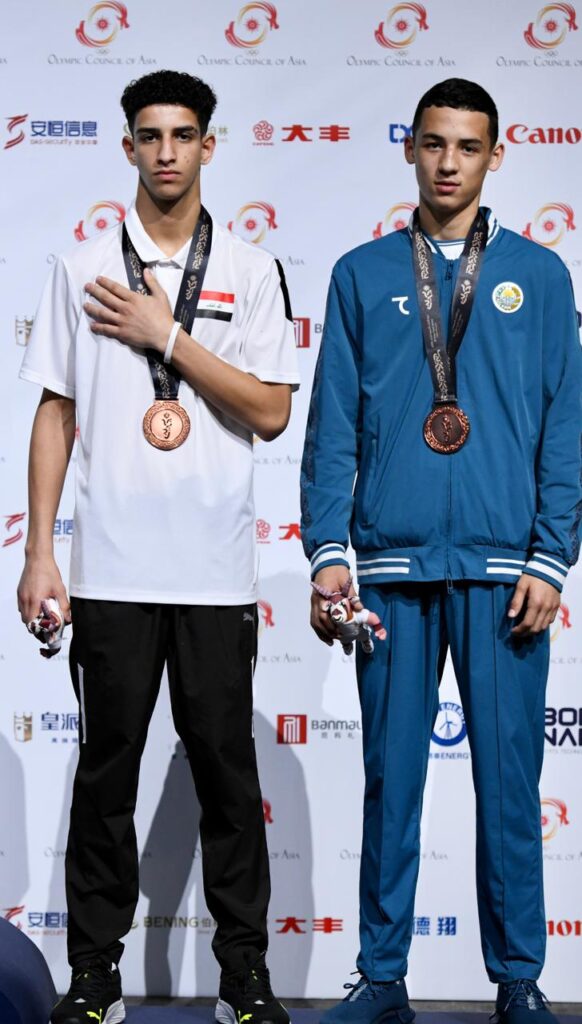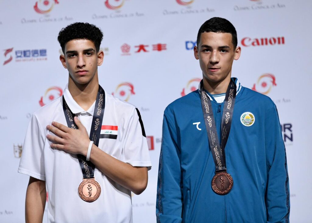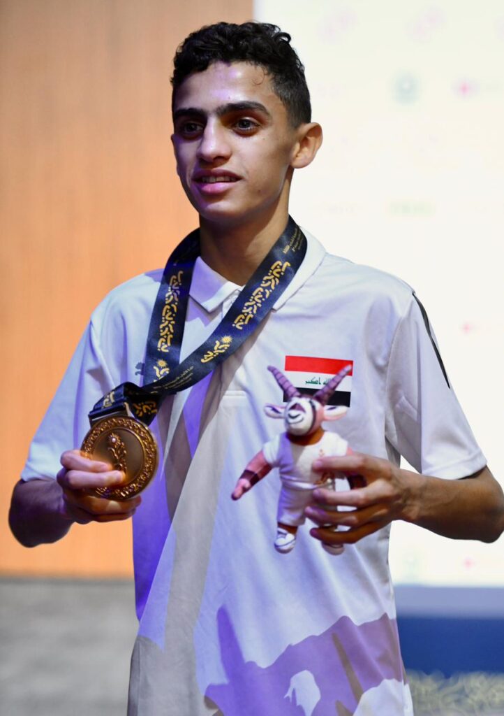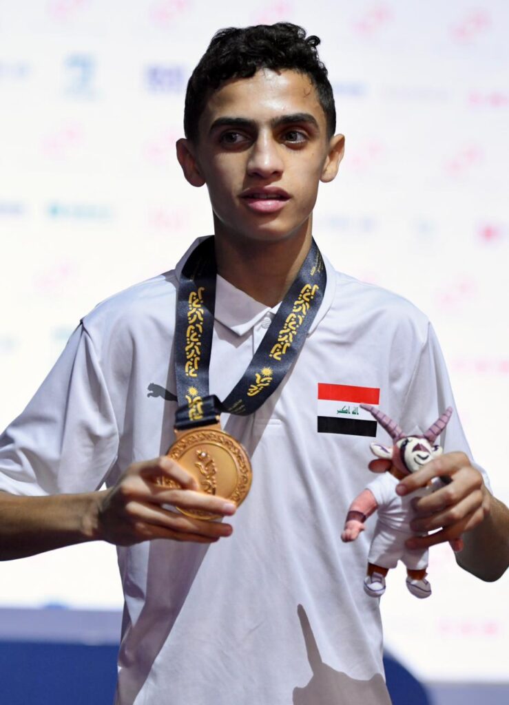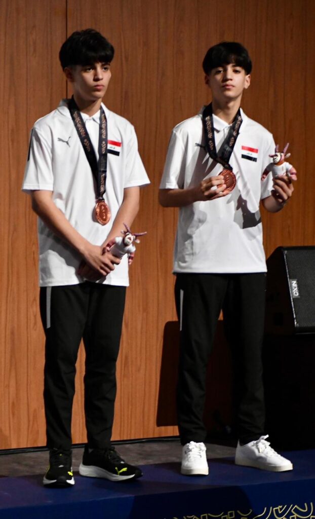 •أما الأوسمة النحاسية فجاءت عبر سجاد حمزة في فعالية الواي كرو، ويوسف فوزي وأحمد فوزي في فعالية الزوجي المختلط، إلى جانب إبراهيم محمد (54 كغم) ومصطفى قتيبة (69 كغم) بعد فوزهما على لاعبين من الأردن.
