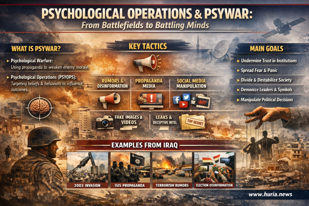 في العقود الأخيرة، لم تعد العمليات النفسية مجرد منشورات ورقية أو إذاعات موجهة كما في الحروب التقليدية بل تطورت لتشمل الإعلام الفضائي والمنصات الرقمية والجيوش الإلكترونية والفيديوهات المفبركة والتسريبات المقصودة والتضخيم المنهجي للأحداث وتوليد الشائعات في لحظات التوتر وتوضح أبحاث RAND وتقارير الأمم المتحدة الخاصة بالعراق أن بيئات التواصل الاجتماعي الواسعة مع تراجع الشفافية الرقمية وارتفاع الاستقطاب باتت تسمح بازدهار التضليل ونمو “الفوضى المعلوماتية” بصورة تهدد الاستقرار السياسي والاجتماعي.