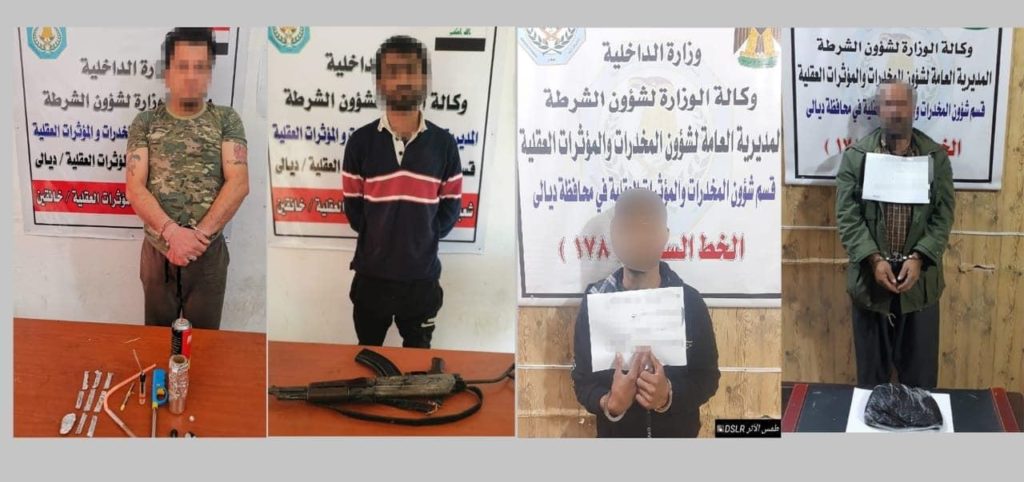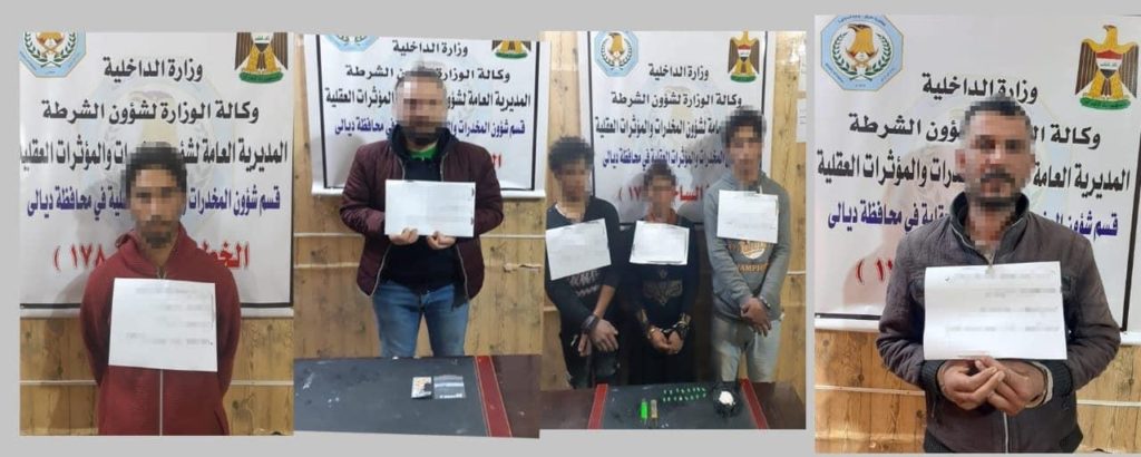 وقالت المديرية في بيان تلقت – حرية – نسخة منه، (2 كانون الثاني 2021)، إن “قوة مشتركة من شرطة ديالى، وقسم شؤون المخدرات والمؤثرات العقلية  تمكنت من إلقاء القبض على أكبر شبكة تضم (١٠) من المتهمين بتعاطي وترويج المخدرات”.