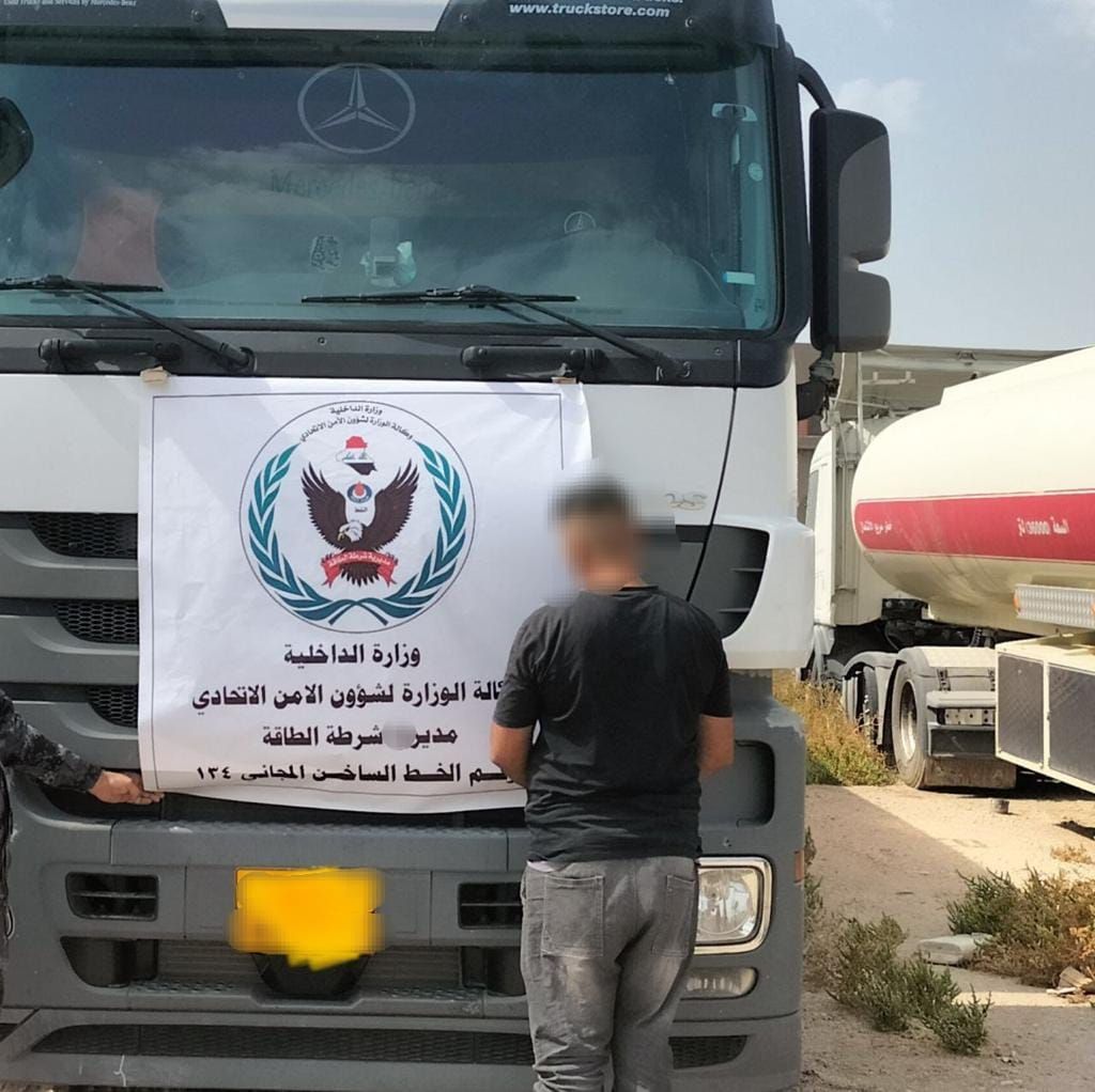 وذكر بيان لشرطة الطاقة : ان مفارز لواءي شرطة الطاقة الثاني والسابع القت القبض على متهمين وضبطت عجلتيهما المُعدتَين لتدوير وتهريب المنتوجات النفطية بمحافظتي صلاح الدين وذي قار بمخالفات متعددة “.