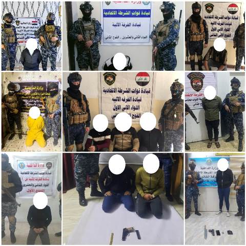 وفق مذكرات قبض قضائية ، نفذت مفارز الشرطة الاتحادية في بغداد عمليات قبض على 6 متهمين بينهم امرأة بمواد قانونية مختلفة ( مخدرات ، السرقة ، خيانة امانة ، الاعتداء) ، كما ألقت مفارز اللواء الحادي عشر في محافظة ميسان القبض على متهمين أثنين بجريمة الدكة العشائرية . تم إحالة المتهمين اصوليا إلى الجهات المختصة.