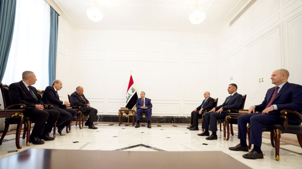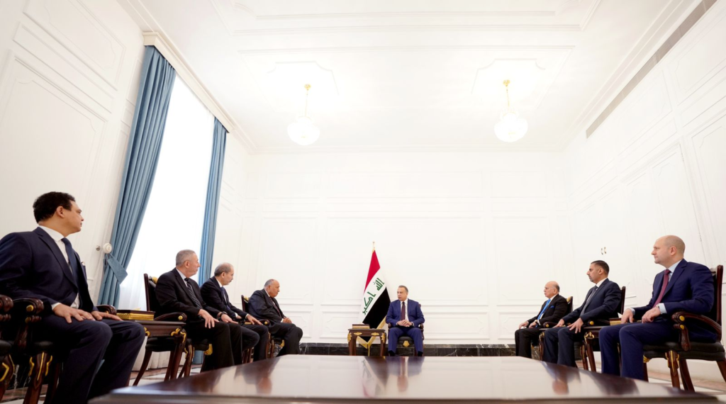 ونقل الوزير الأردني تحيات العاهل الأردني جلالة الملك عبد الله الثاني بن الحسين إلى السيد الكاظمي، مثلما نقل الوزير المصري تحيات فخامة الرئيس عبد الفتاح السيسي رئيس جمهورية مصر العربية إلى سيادته. وقد تم التأكيد على أهمية المجابهة المشتركة للتحديات التي تواجهها الدول الثلاث ضمن الظروف الراهنة.