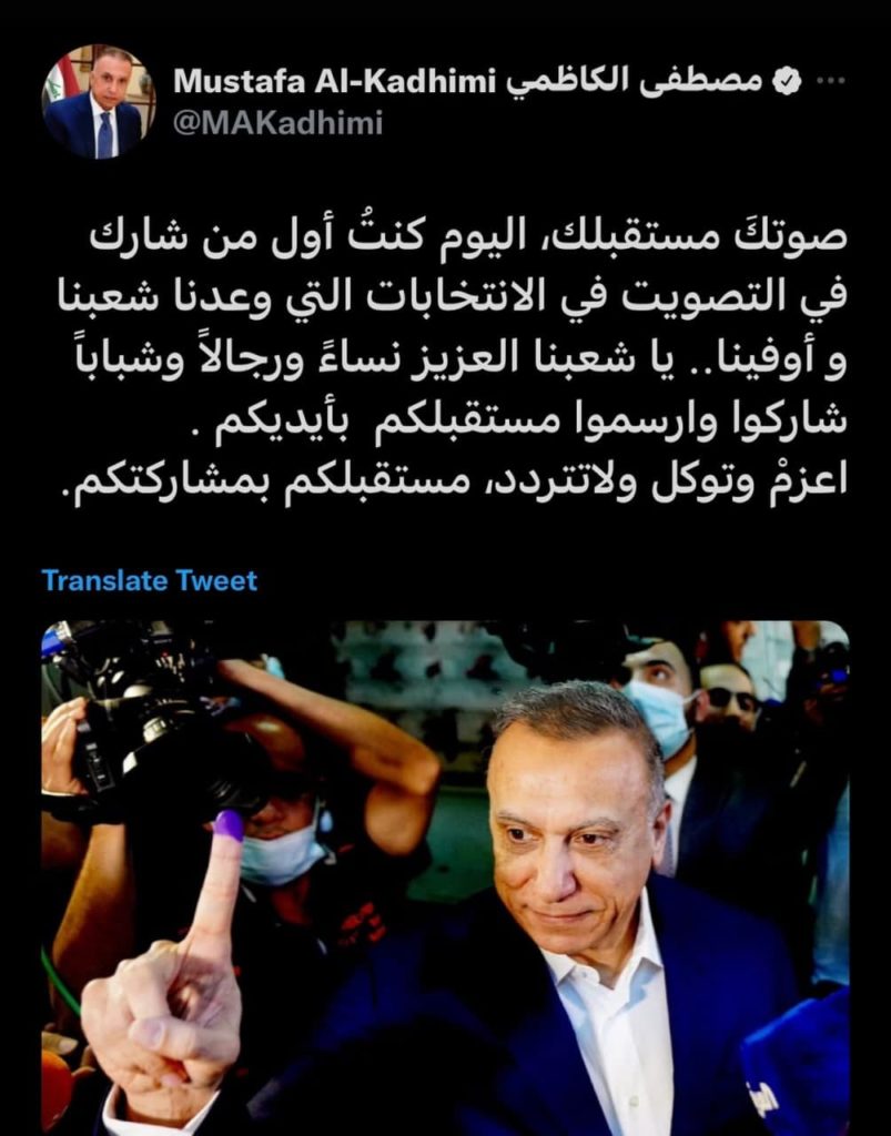 صوتكَ مستقبلك، اليوم كنتُ أول من شارك في التصويت في الانتخابات التي وعدنا شعبنا و أوفينا.. يا شعبنا العزيز نساءً ورجالاً وشباباً شاركوا وارسموا مستقبلكم بأيديكم .