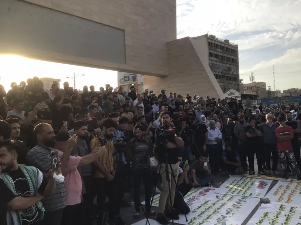 وشهدت ساحة التحرير، وسط بغداد، توافد المئات من المواطنين لاحياء الذكرى الرابعة لتظاهرات تشرين عام 2019، فيما اصدروا بيانا يوم أمس يوضح فيه مطالبهم بالتزامن مع الذكرى الرابعة، كان من بينها محاسبة قتلة المتظاهرين ورفض قانون انتخابات مجالس المحافظات.