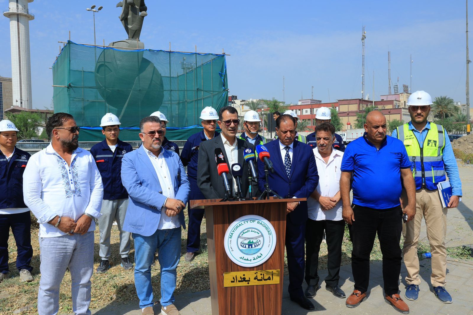 جاء ذلك خلال مؤتمر صحفي عقد في ساحة النسور بحضور مدير عام العلاقات والاعلام بامانة بغداد (محمد الربيعي) ومدير عام دائرة الفنون العامة بوزارة الثقافة والسياحة والآثار (علي عويد) ومعاون مدير دائرة الطرق والجسور في وزارة الاعمار والاسكان (حازم مجيد) وممثلين عن نقابة الفنانين (اسعد الربيعي) وجمعية الفنانين التشكيليين (طه وهيب) وبلدية المنصور والشركة المنفذة لمشاريع المجسرات والانفاق .