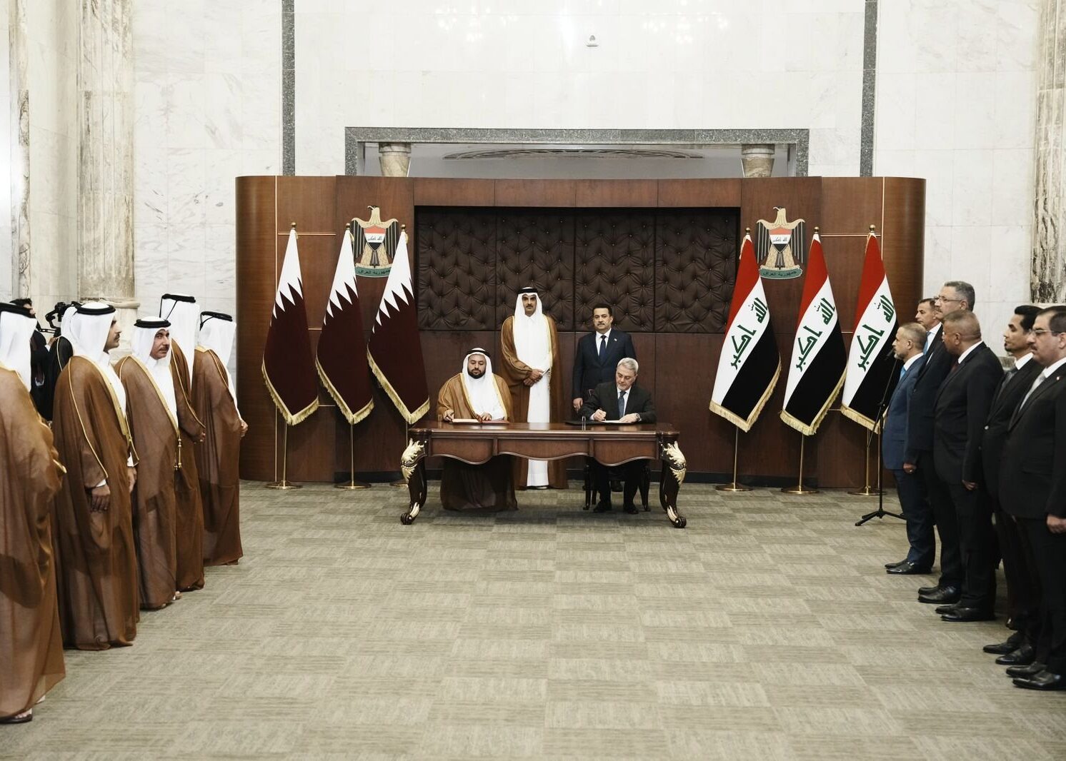 وتابع: “نرحب بالدعم الفعال للشيخ آل ثاني ورئيس الوزراء العراقي محمد شياع السوداني وقادة آخرين في المنطقة والشعب العراقي كما نرحب بمشاركة رئيس إقليم كردستان نيجيرفان بارزاني في هذه المناقشات لزيادة تعزيز التنسيق بين بغداد وإقليم كردستان العراق”.