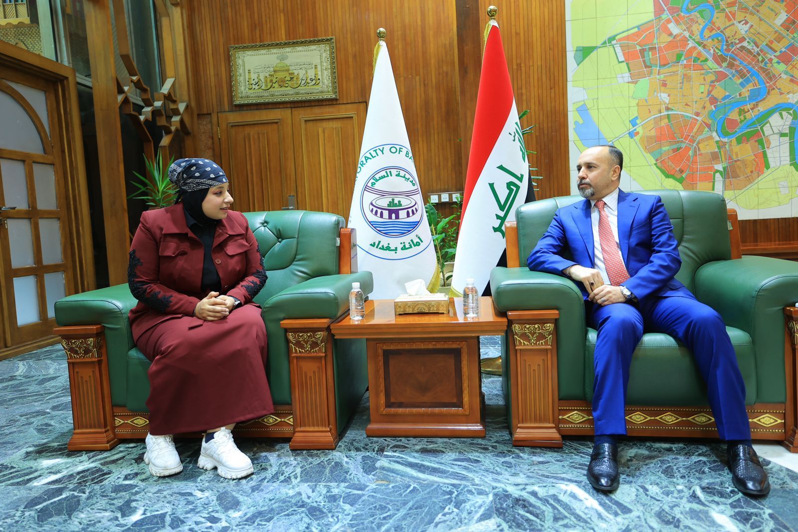 التقى امين بغداد عمار موسى كاظم الشابة مارية صاحبة مشروع / مارية فود / ، مؤكداً دعمه الكامل لها ولمشروعها .