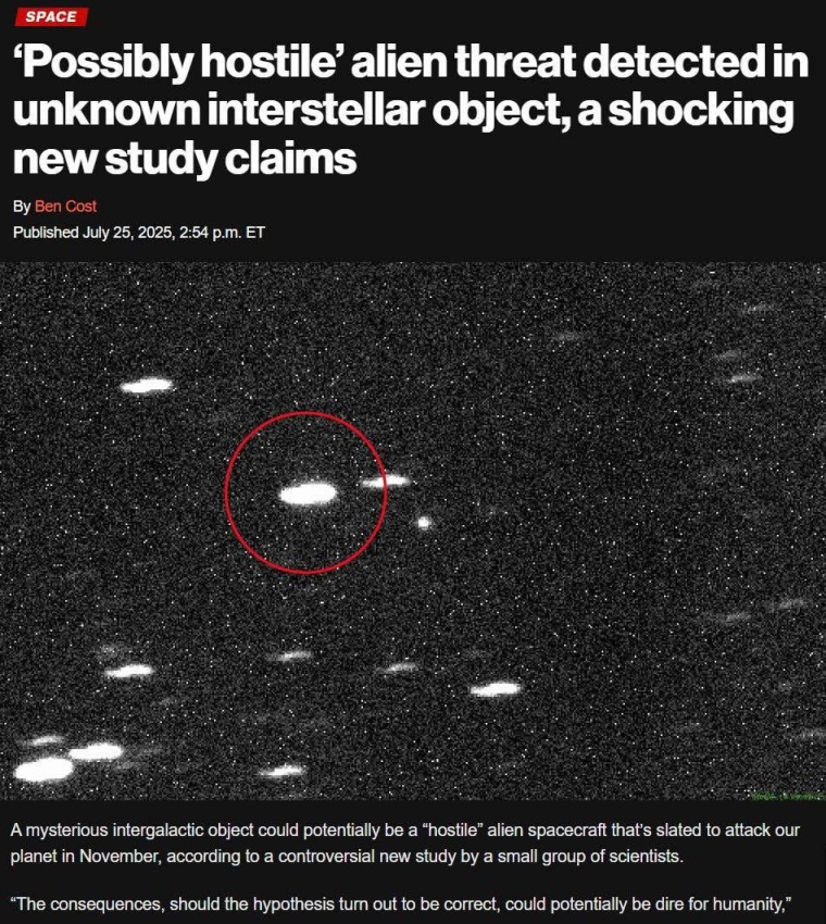 حذر باحثون من جامعة هارفارد، في الولايات المتحدة الأمريكية، اليوم الأحد (27 تموز 2025)، من هجوم فضائي محتمل على الأرض بعد 3 أشهر.