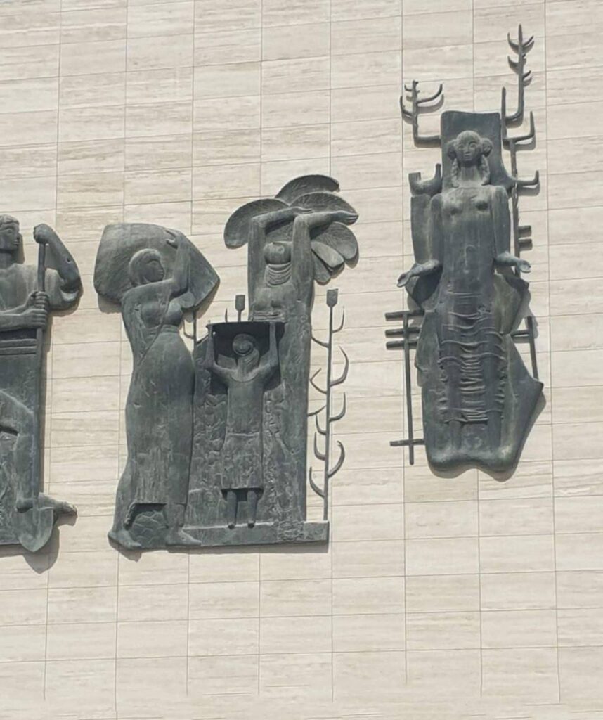 ٢- أعيد إكساء النصب بالحجر Travertine الترفرتين، تركي المنشأ، وهو بنفس نوعية وأبعاد وأحجام الحجر السابق، ولم يكن هناك أيّ تغيير للمواصفات الفنية . كان التحدي الأكبر إجراء الصيانة دون المساس بالمنحوتات أو إنزالها، وتمت العملية بنجاح كبير .