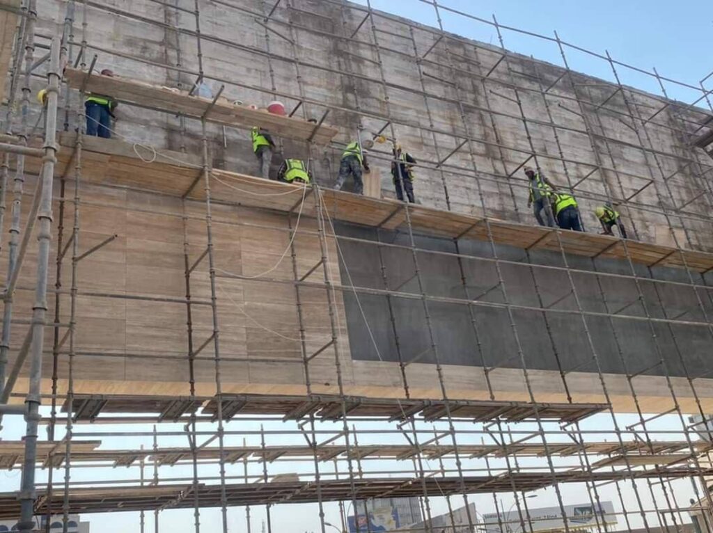 ٤- هناك من يشكل على لون الحجر ، نود الإشارة إلى أن الحجر تم استيراده مباشرة من المصدر ، ولمن لا يعلم فعادة عملية التقطيع والمعالجة تمر بعدد من المراحل بعضها يتم استعمال الماء و السوائل، ولكونه مادة مسامية لذلك يبدأ الحجر بفقدان هذه السوائل بشكل تدريجي ويبدأ تغيير اللون من الداكن الى الفاتح بشكل تدريجي . أما مقارنته ودرجة تطابقه بحجر تعرض للعوامل الجوية لمدة أكثر من ٦٠ عاماً فهو لا يمتّ للمنطق بصلةٍ.