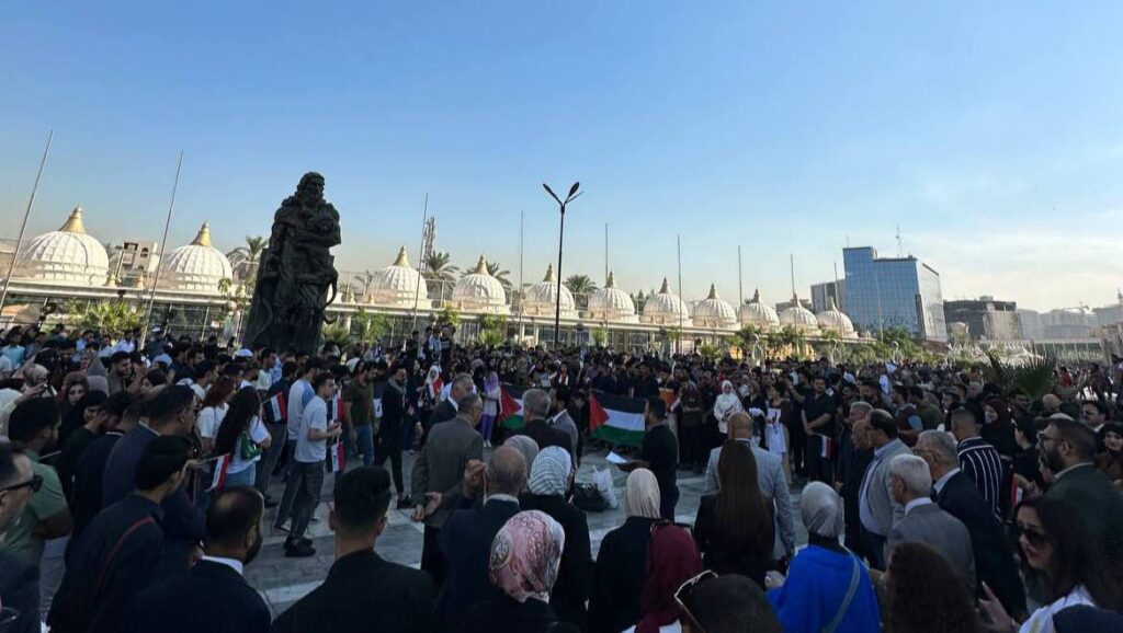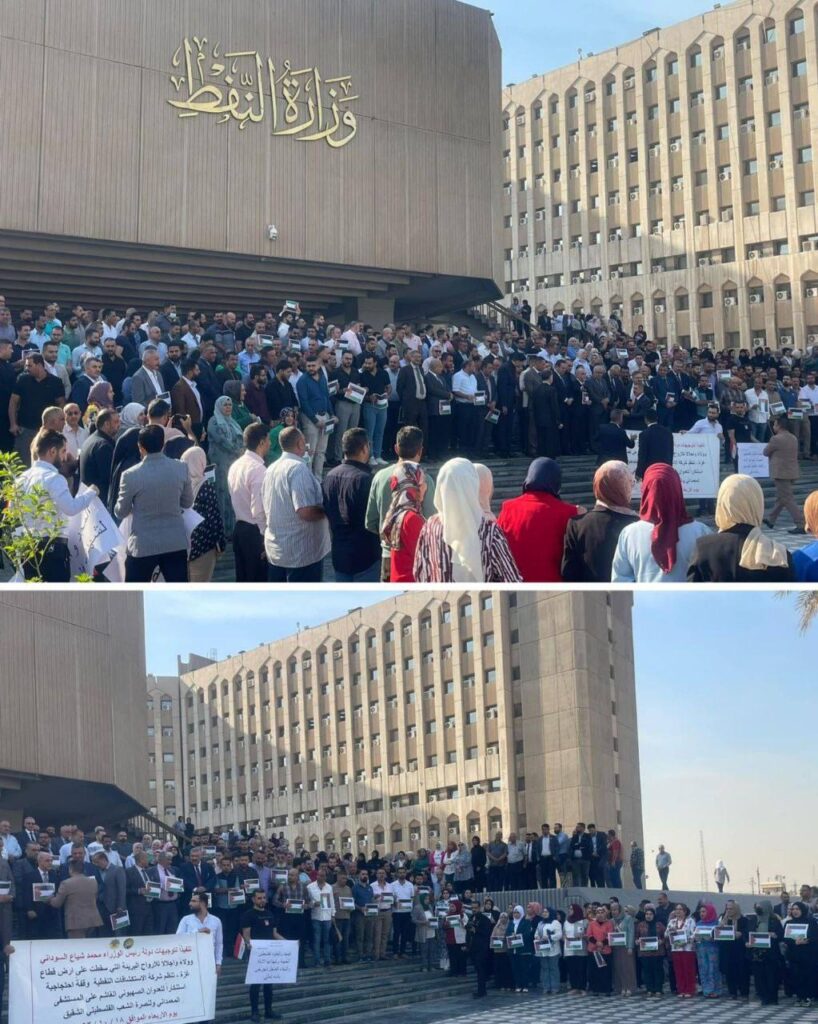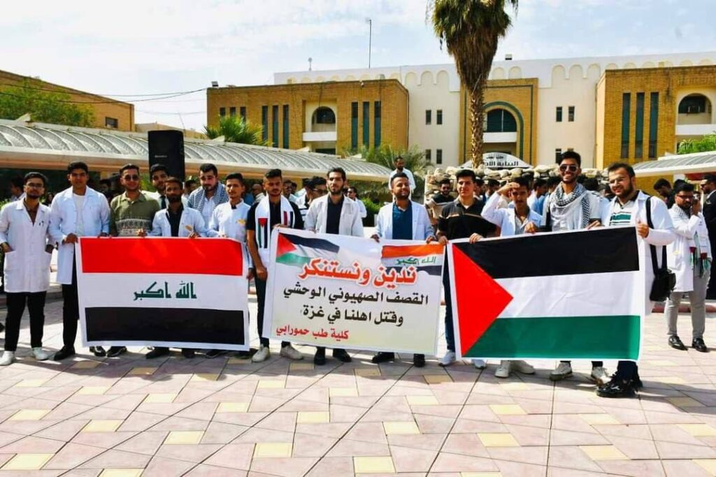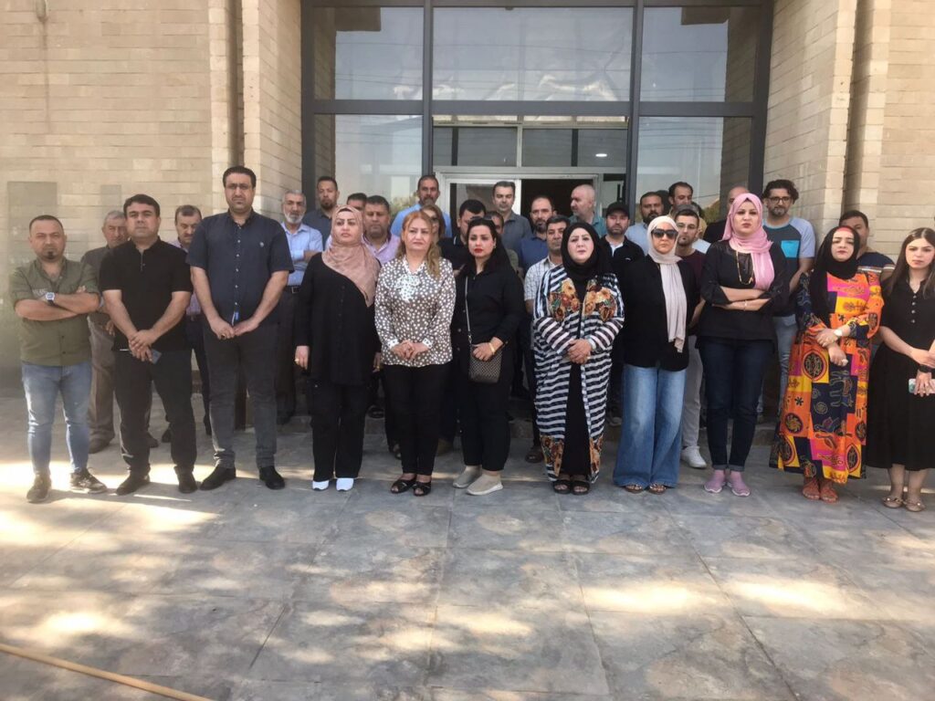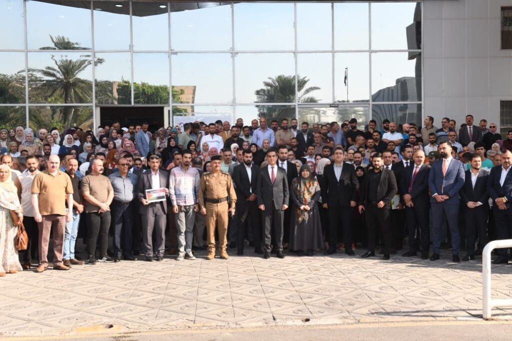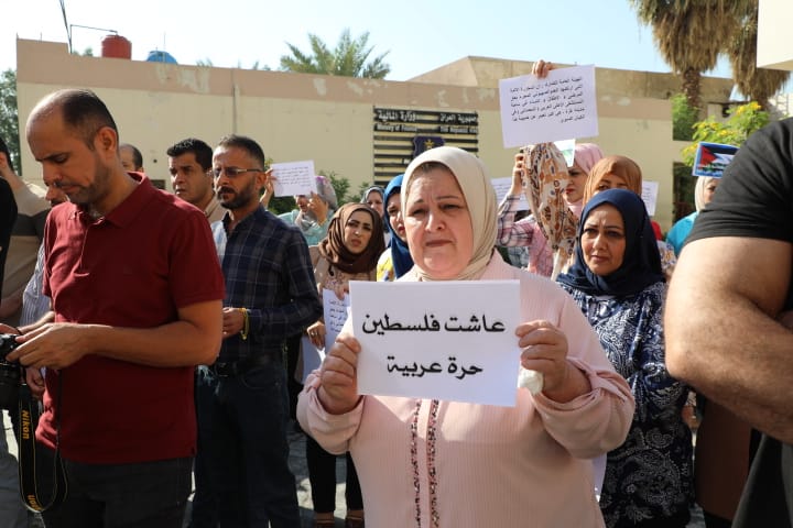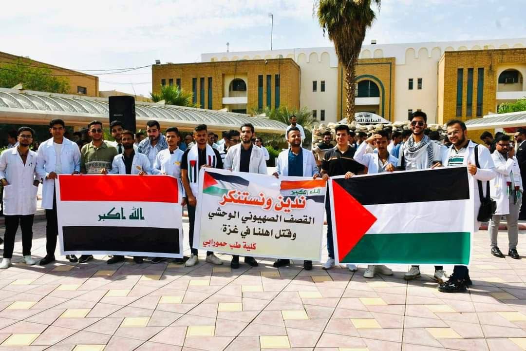 صور جانب من وقفة التضامن والحداد بدوائر الدولة والجامعات والمدارس العراقية على ضحايا مجزرة مستشفى المعمداني في غزة .