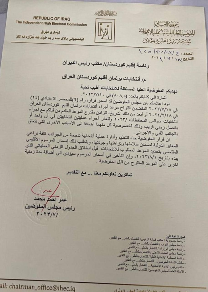 بالوثيقة.. المفوضية العليا توضح بخصوص “موعد اجراء انتخابات برلمان كردستان”