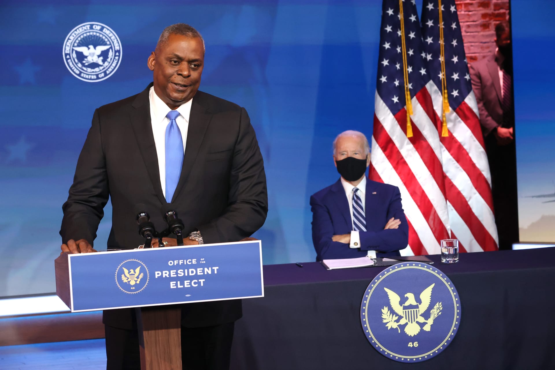 في البداية، فكر بايدن في اختيار ميشيل فلورنوي لقيادة البنتاغون. كانت ستصبح أول امرأة في هذا المنصب، لكنه بدلا من ذلك، اختار أوستن، وهو أول وزير دفاع أميركي من أصل أفريقي.