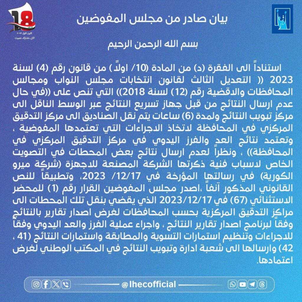 بيان صادر من مجلس المفوضين