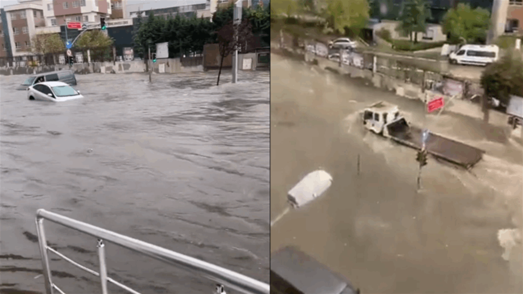 غمرت السيول الشوارع في عدة مناطق بمدينة اسطنبول في تركيا، إثر تساقط الأمطار الغزيرة.