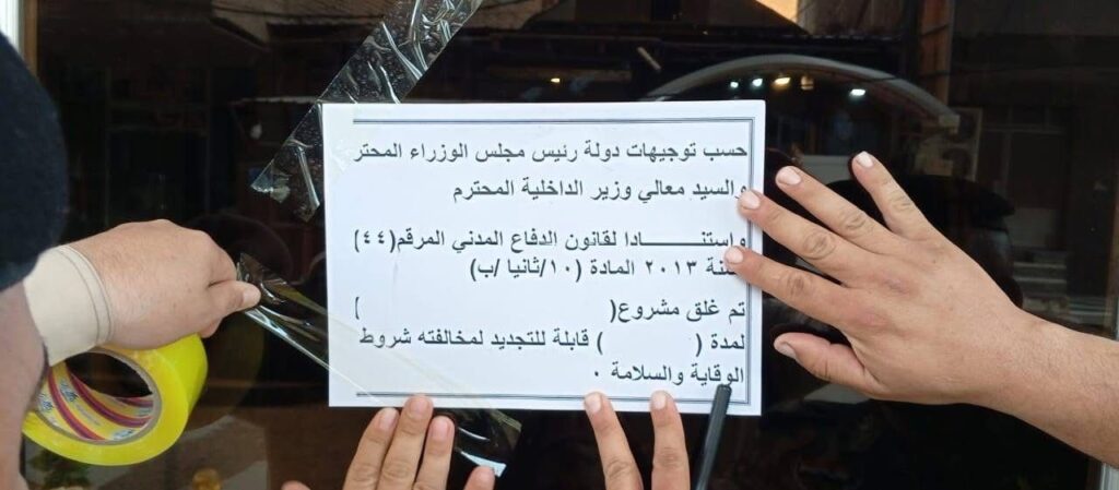 دفاع مدني النجف: إغلاق أكثر من 300 مشروع لمخالفتها شروط السلامة