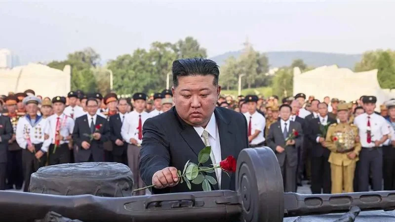وذكرت وكالة الأنباء المركزية الكورية الرسمية، اليوم الأحد، أن زعيم كوريا الشمالية زار متحفًا حربيًا، في اليوم السابق، في ذكرى الحرب الكورية ووضع إكليلًا من الزهور أمام برج الصداقة في بيونج يانج.