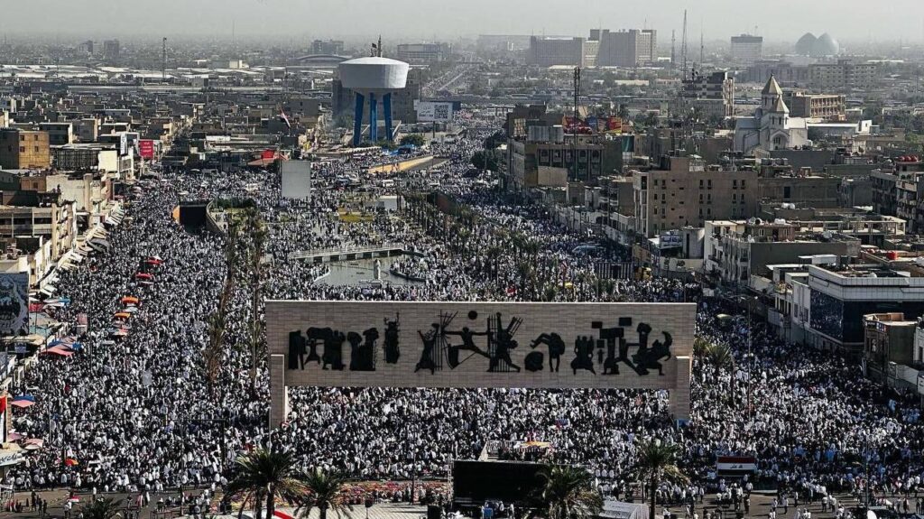 ومنذ يوم الأربعاء الماضي، أرسل الصدر القياديين البارزين في التيار حسن العذاري وحاكم الزاملي، إضافة إلى المسؤول العام لسرايا السلام “أبو مصطفى الحميداوي” إلى ساحة التحرير لتنسيق التظاهرة المليونية المزمعة.