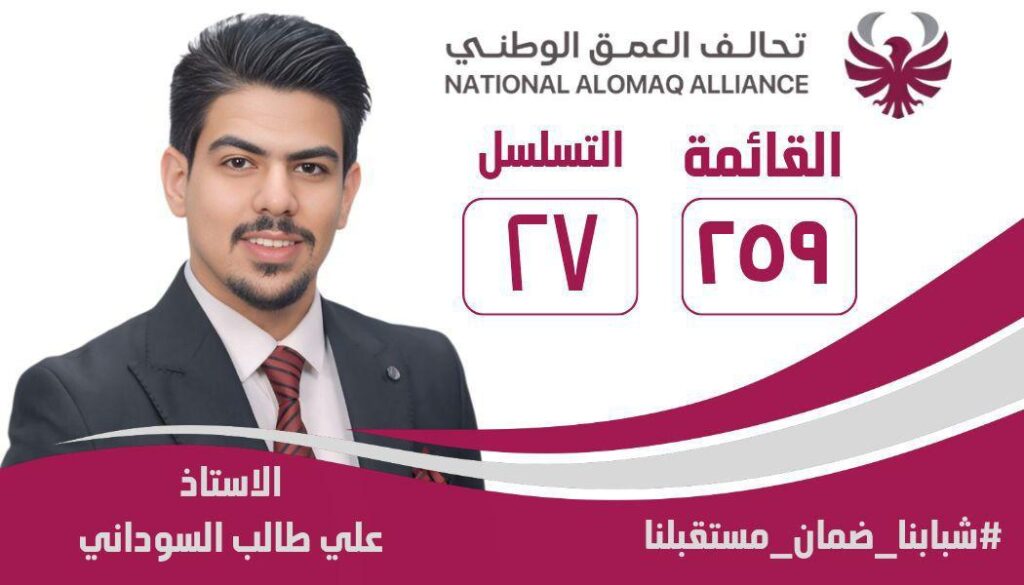 تحالف العمق الوطني – القائمة 259 المرشح: علي طالب السوداني – التسلسل 27