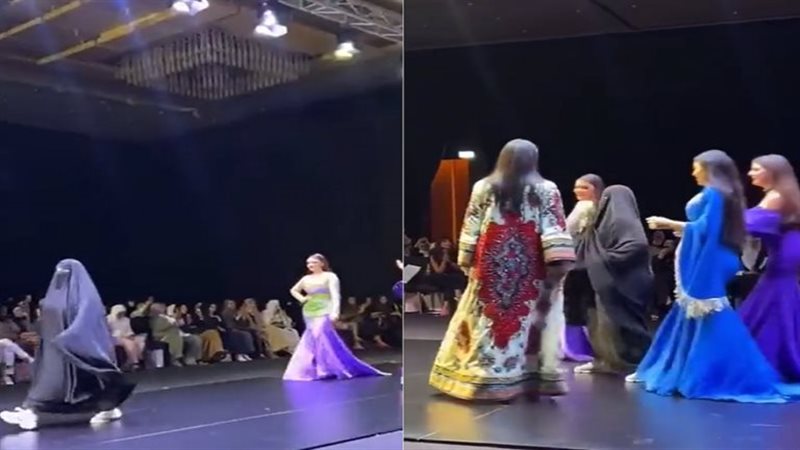 وأظهر مقطع فيديو متداول على “تويتر” المرأة المرتدية النقاب، وتبين أنها المصممة الكويتية ابتسام الهاجري، وهي تتقدم العارضات في نهاية عرض الأزياء لتحية الحضور.