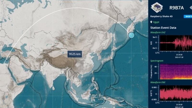 ونظرًا لشدة الزلزال، سجل جهاز الرصد الزلزالي التابع للمركز القومي لعلوم البحار والمصايد (MHMC-NIOF) والمتمركز بمدينة الإسكندرية، مصر، اضطرابات واضحة في البيانات السيزمية، مما يشير إلى مدى تأثير الموجات الزلزالية على نطاق جغرافي واسع تجاوز منطقة الحدث نفسه.