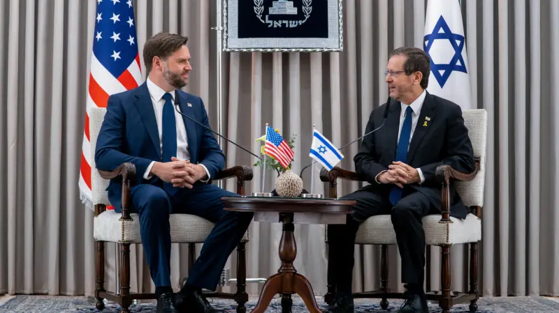 أكد الرئيس الإسرائيلي إسحاق هرتسوغ، خلال لقائه الأربعاء نائب الرئيس الأمريكي جاي دي فانس في القدس، على ضرورة العمل من أجل توفير الأمل للإسرائيليين والفلسطينيين والمنطقة ككل، في حين أعرب فانس عن أمله في أن تمضي خطة السلام التي طرحها الرئيس الأمريكي دونالد ترامب قدماً رغم التحديات، بما يسهم في تحقيق الاستقرار والسلام.