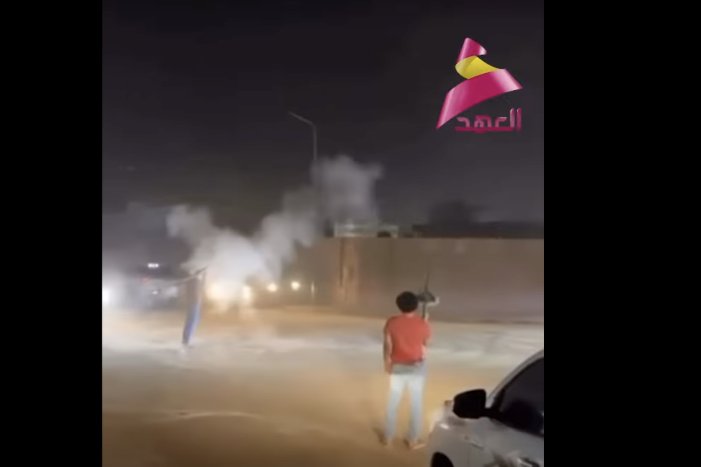 ويظهر المقطع المصور اطلاق نيران من قبل أشخاص يستخدم أحدهم قاذفة “آر بي جي”.