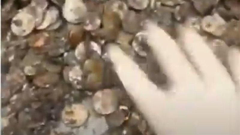 وتداول نشطاء مواقع التواصل الاجتماعي مقطع فيديو لأحد عمال الصرف، في إحدى الدول غير العربية، قام بإصلاح انسداد بماسورة المياه، وعندما بدأ في الإصلاح وتدفقت المياه فوجئ بكنز ينزل مع المياه الجارية، وكانت عبارة عن عملات معدنية فضية وذهبية، والغريب وجود قطع من الألماس مع كنز العملات تدفق مع الماسورة التي انسدت.