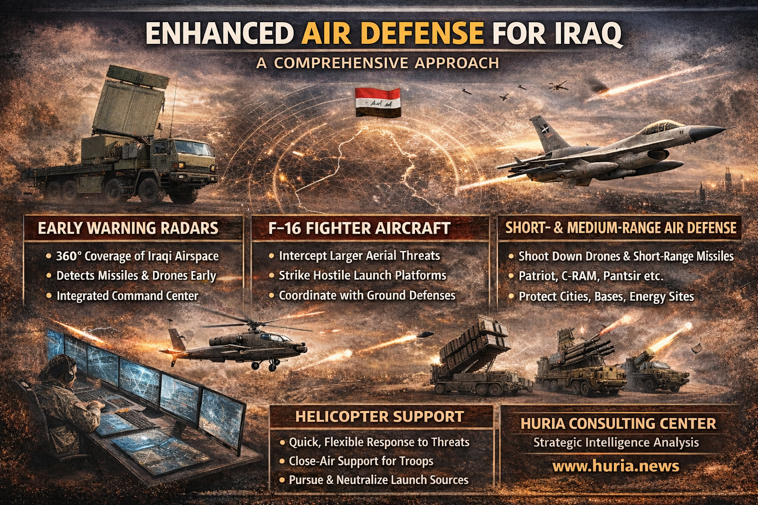 إن حماية سماء العراق لا يمكن أن تتحقق عبر الطائرات المقاتلة وحدها، بل تتطلب بناء منظومة دفاع جوي متكاملة تقوم على:
