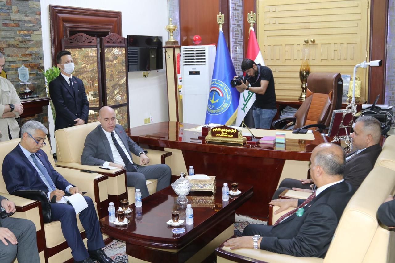 من جانبه اكد السفير التركي تعميق العلاقات بين الشركات التركية وموانئ العراق .