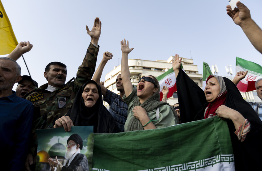وشهدت طهران، مساء الأحد، احتجاجات حاشدة مناهضة للولايات المتحدة وإسرائيل، طالب فيها كثيرون بالانتقام. وكانت إسرائيل قد شنت هجومًا مفاجئًا على إيران قبل أحد عشر يومًا، ويتبادل البلدان منذ ذلك الحين القصف يوميًا، مما أسفر عن مقتل مئات الأشخاص.