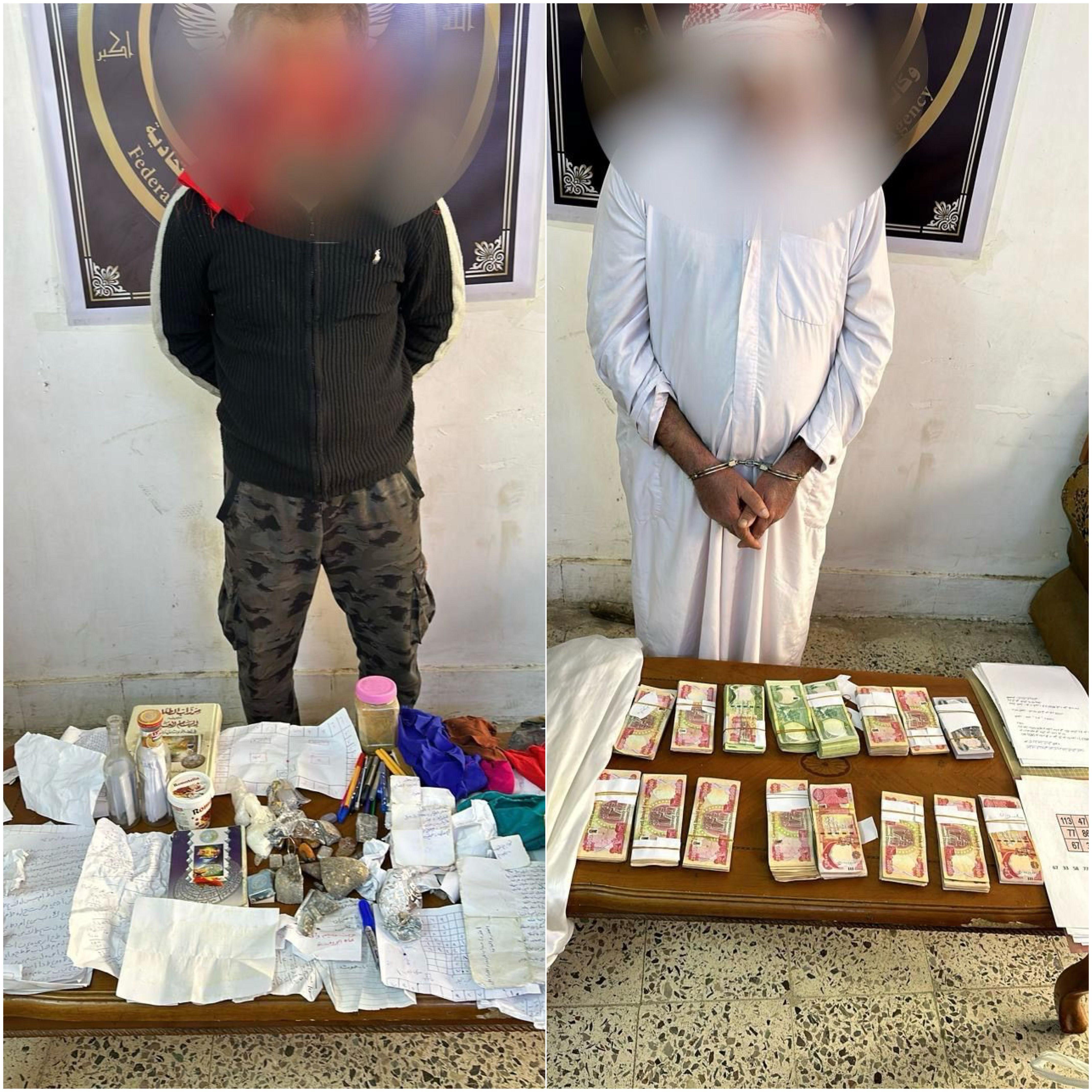 وذكر بيان لمديرية الجريمة المنظمة اننه تم ضبط بحوزة المتهمين مبالغ مالية كبيرة وكتب واحجار تستخدم في السحر والشعوذة ، مشيرة الى أتخاذ الاجراءات القانونية بحقهم واحالتهم الى المحاكم المختصة”.