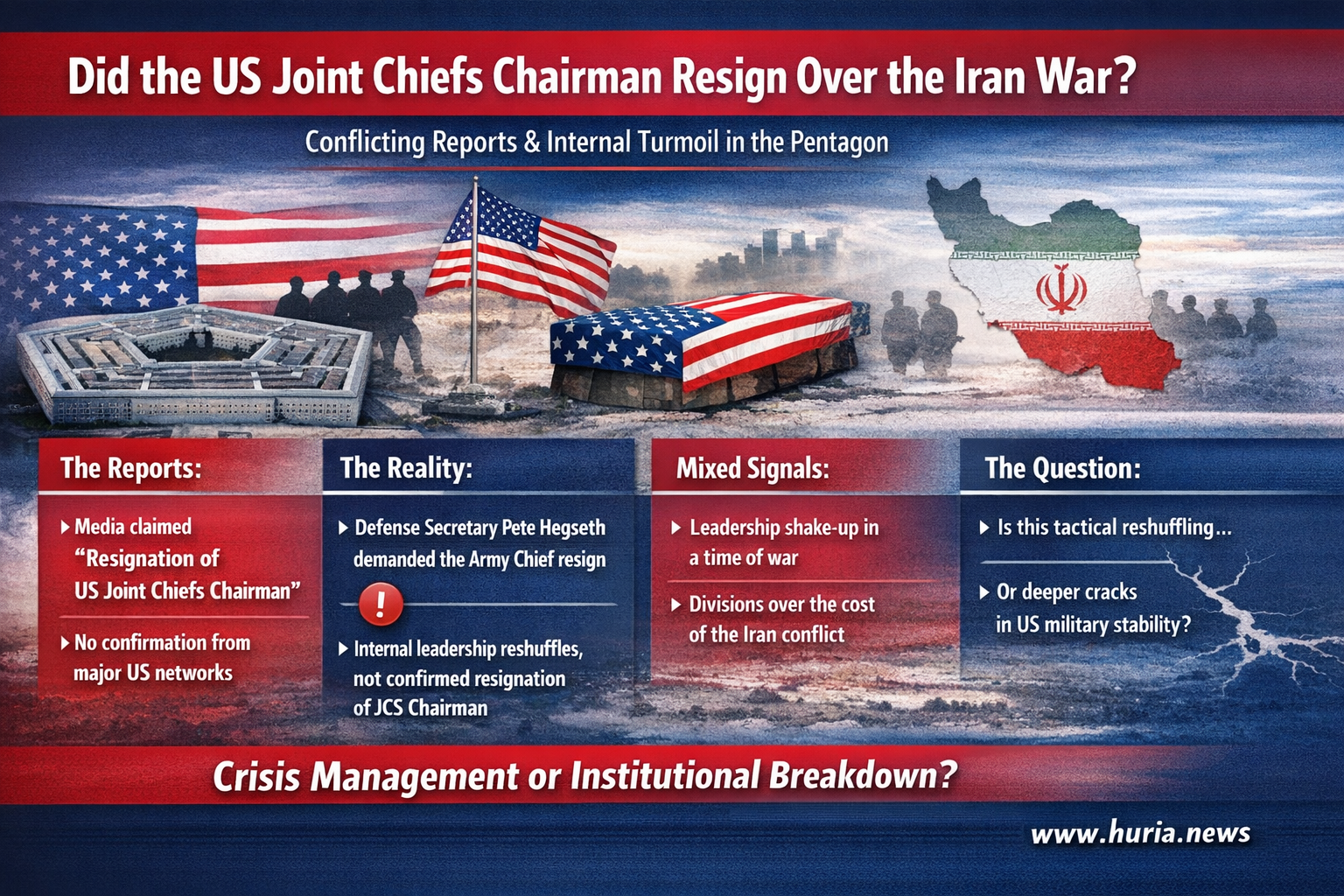 وبحسب المعطيات المتوفرة، فإن وزارة الدفاع الأمريكية (البنتاغون) شهدت بالفعل تغييرات على مستوى القيادات العسكرية، إلا أن التدقيق في طبيعة هذه التغييرات يكشف وجود خلط واضح بين المناصب، إذ تتحدث بعض المصادر عن إقالة أو طلب تنحي مسؤولين عسكريين، وليس استقالة مؤكدة لرئيس هيئة الأركان المشتركة، وهو أعلى منصب عسكري في الولايات المتحدة.