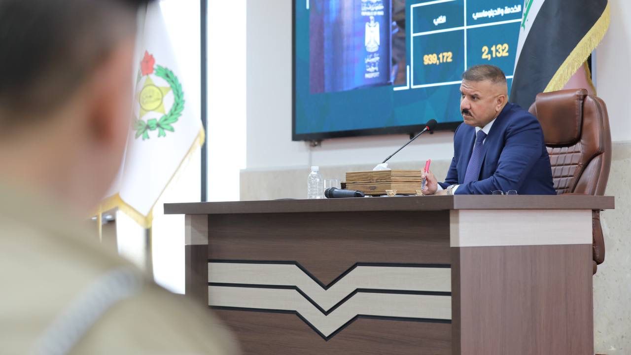 وذكر بيان إذ عقد اجتماعاً مع الكادر المتقدم بحضور مديرها العام ، وفي بداية الاجتماع قدم الوزير التهاني للضباط الذين تسنموا مناصب جديدة في هذه المديرية، حيث استمع الى إيجاز عن العمل”.